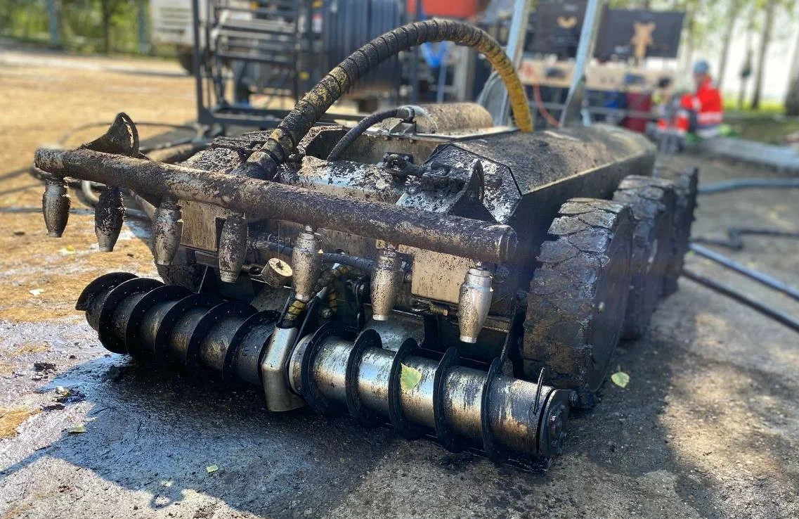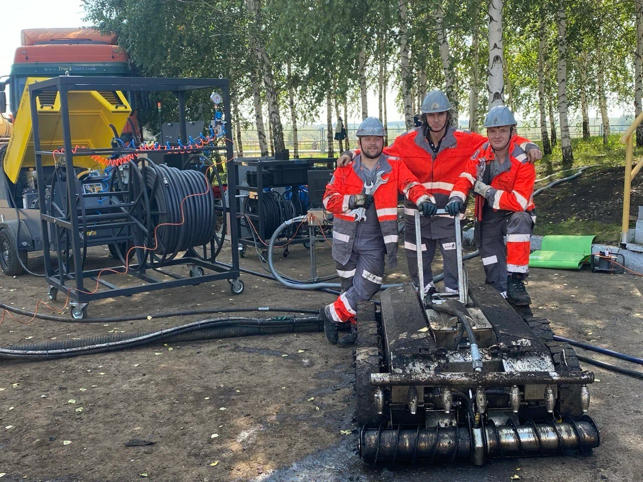 Робот в мазуте уверенно буксировал рукав длиной 50 м с коммуникациями;